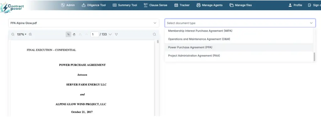 Select the contract you want to run ClauseSense on and choose the relevant contract type: