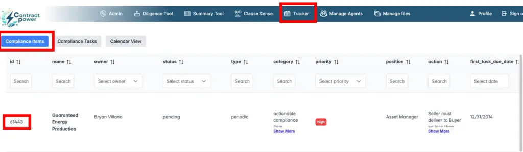Once you’ve sent the item to the tracker via ClauseSense, navigate to the Tracker by clicking the header at the top.